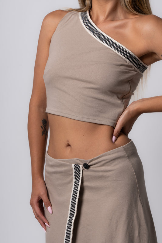 Top de lino teñido con tinte natural y diseño a rayas en el centro