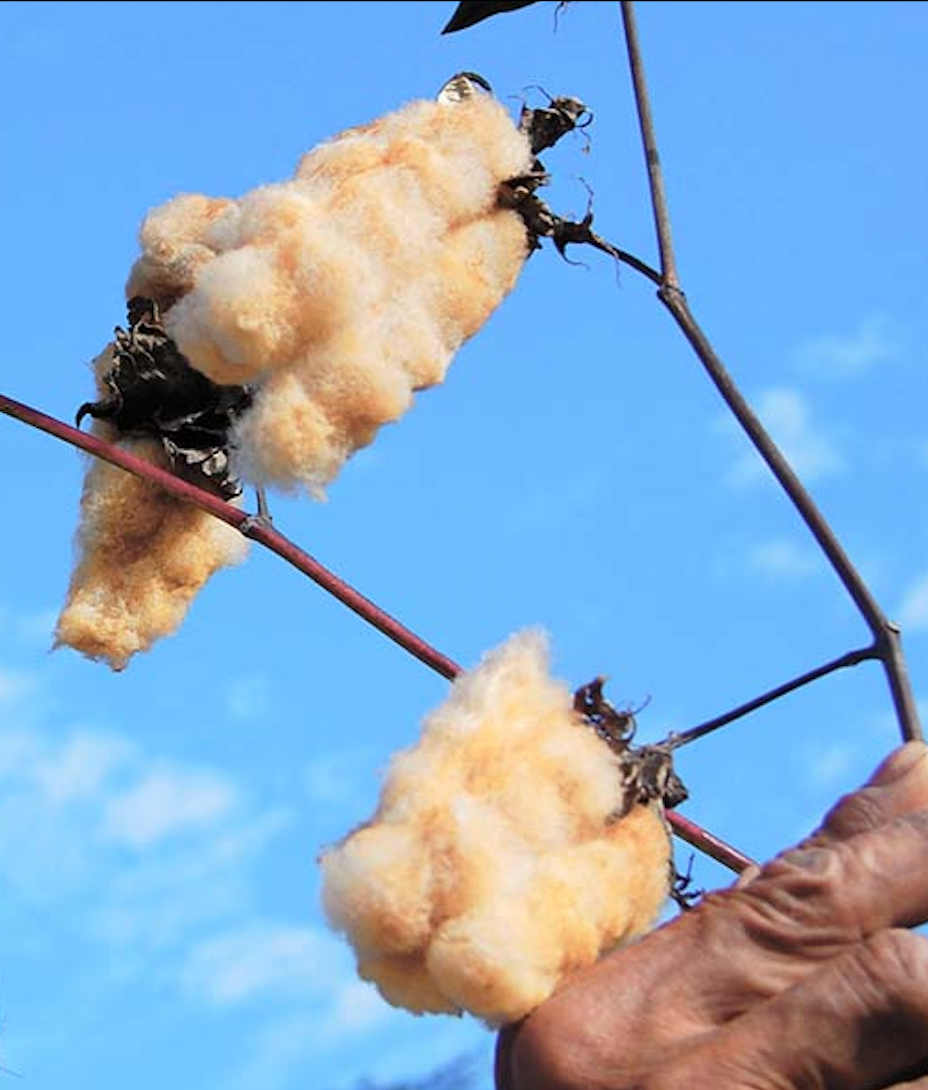El algodón nativo o “Pakucho” es un algodón ancestral pigmentado naturalmente. El copo de algodón crece naturalmente de tonos terrosos como el beige, marrón y verde. Esto lo hace aún más sostenible pues ya no es necesario teñirlo.