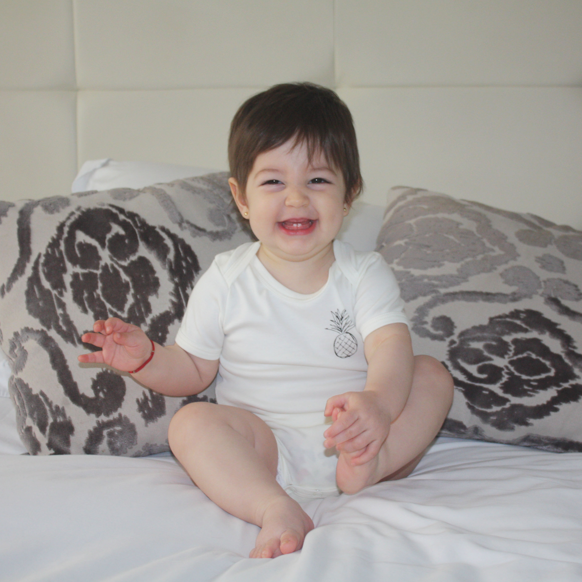 Body de algodón pima 100% orgánico certificado por GOTS para bebé con estampado de piña.