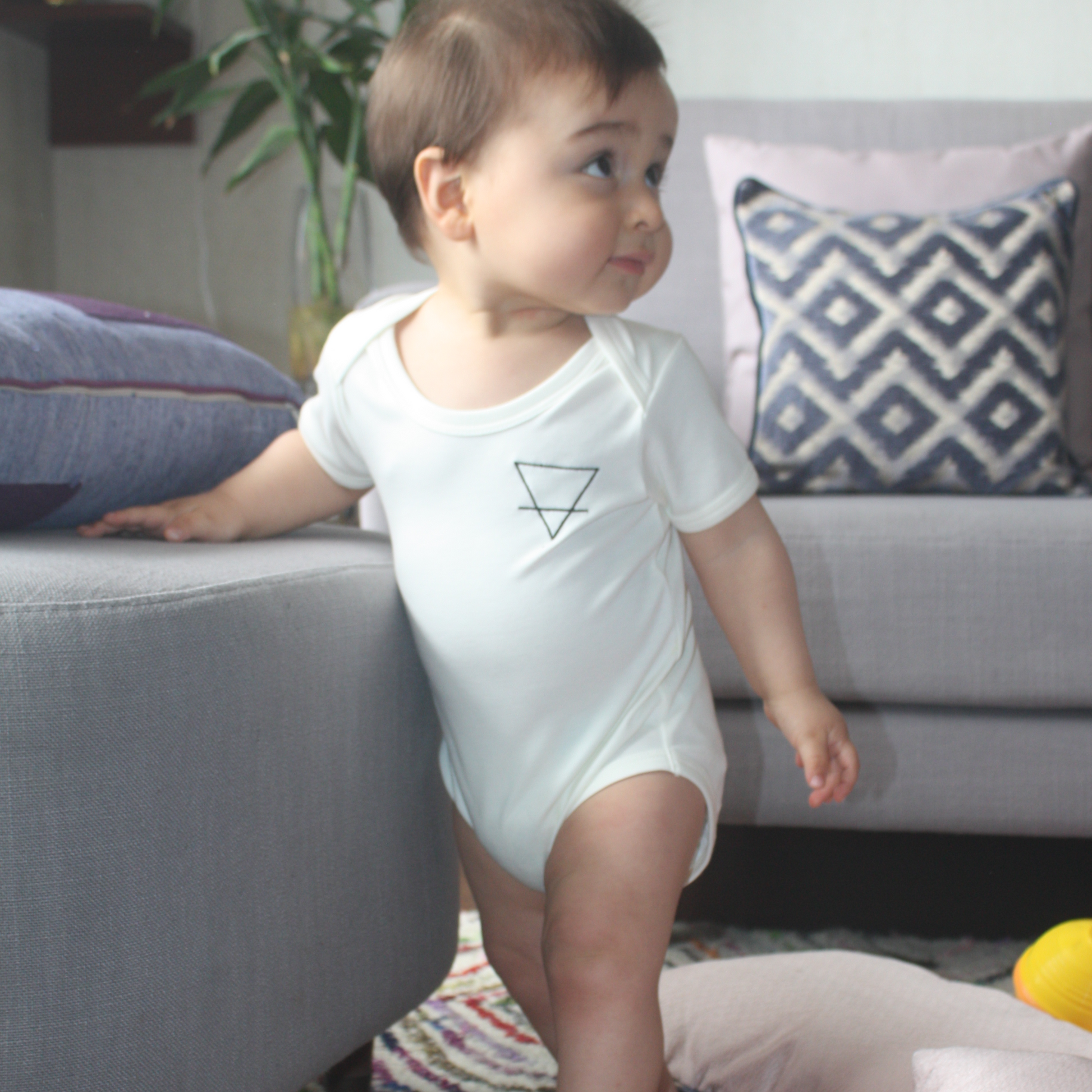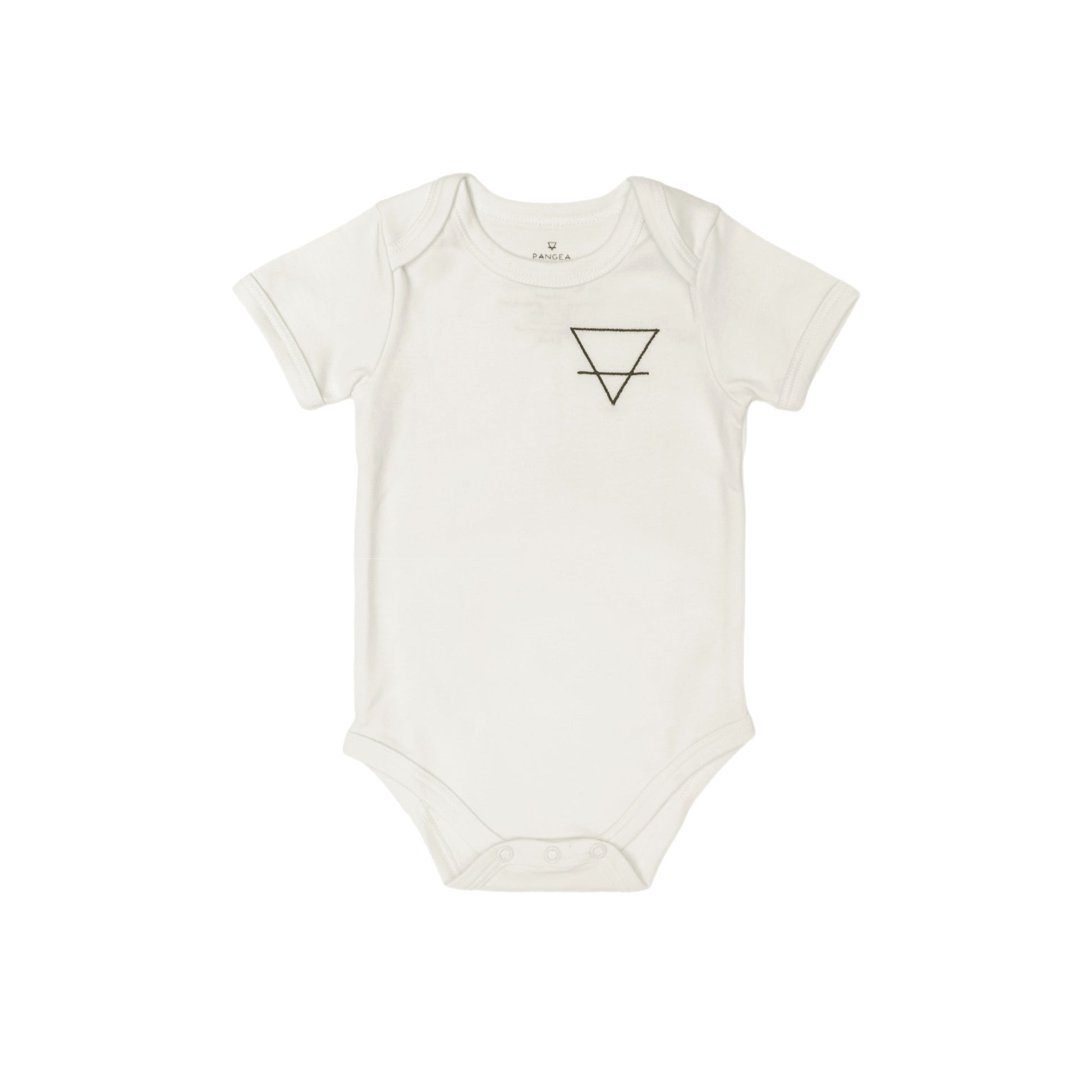 Body de algodón pima 100% orgánico para bebé con bordado del logo PANGEA, que simboliza el elemento alquímico de la tierra.