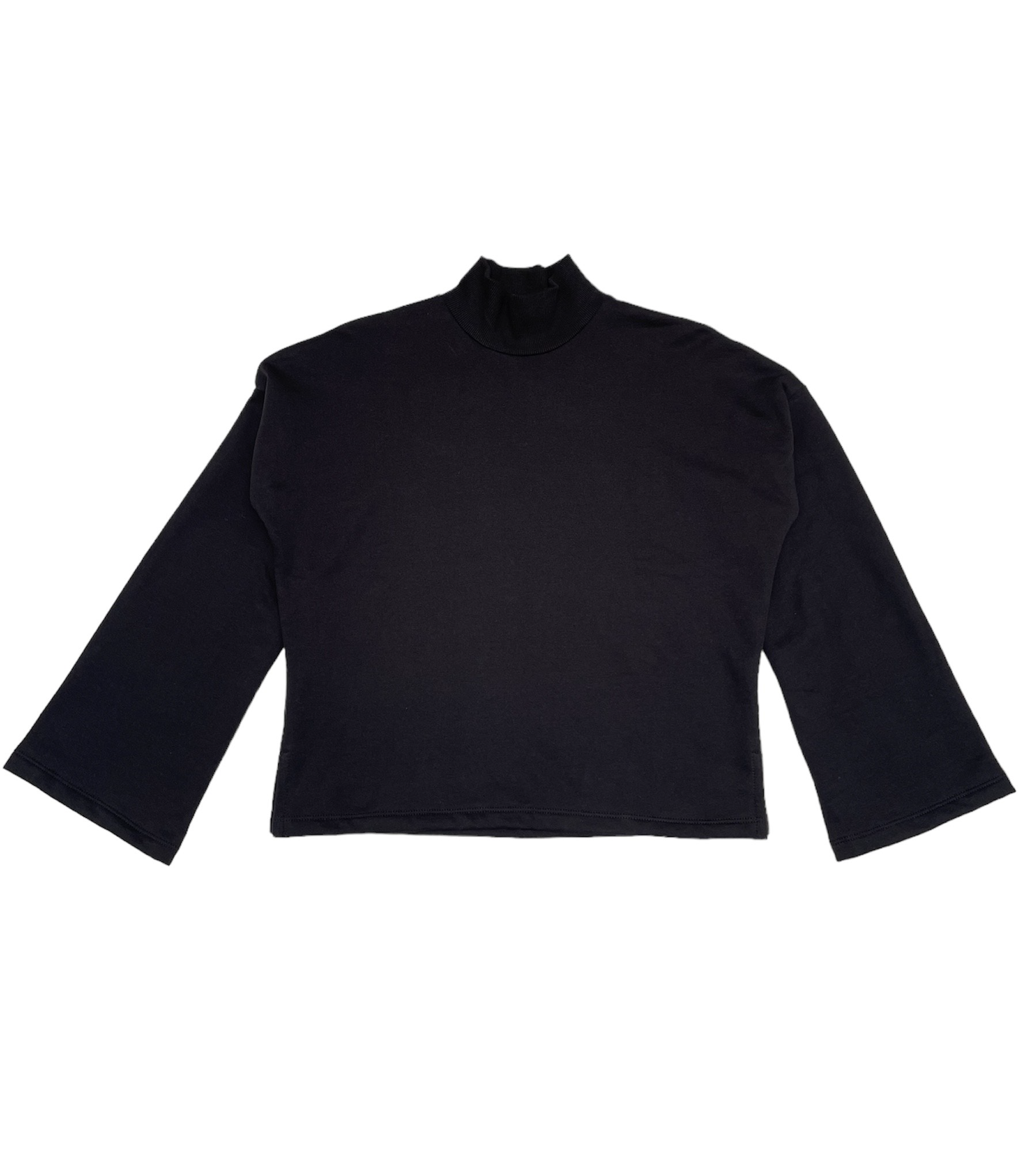 Cafarena de franela de algodón orgánico en color negro. El diseño es con manga caída y acampanada. La calidad es deliciosa, perfecta para estar abrigada y cómoda pero con estilo en este invierno.