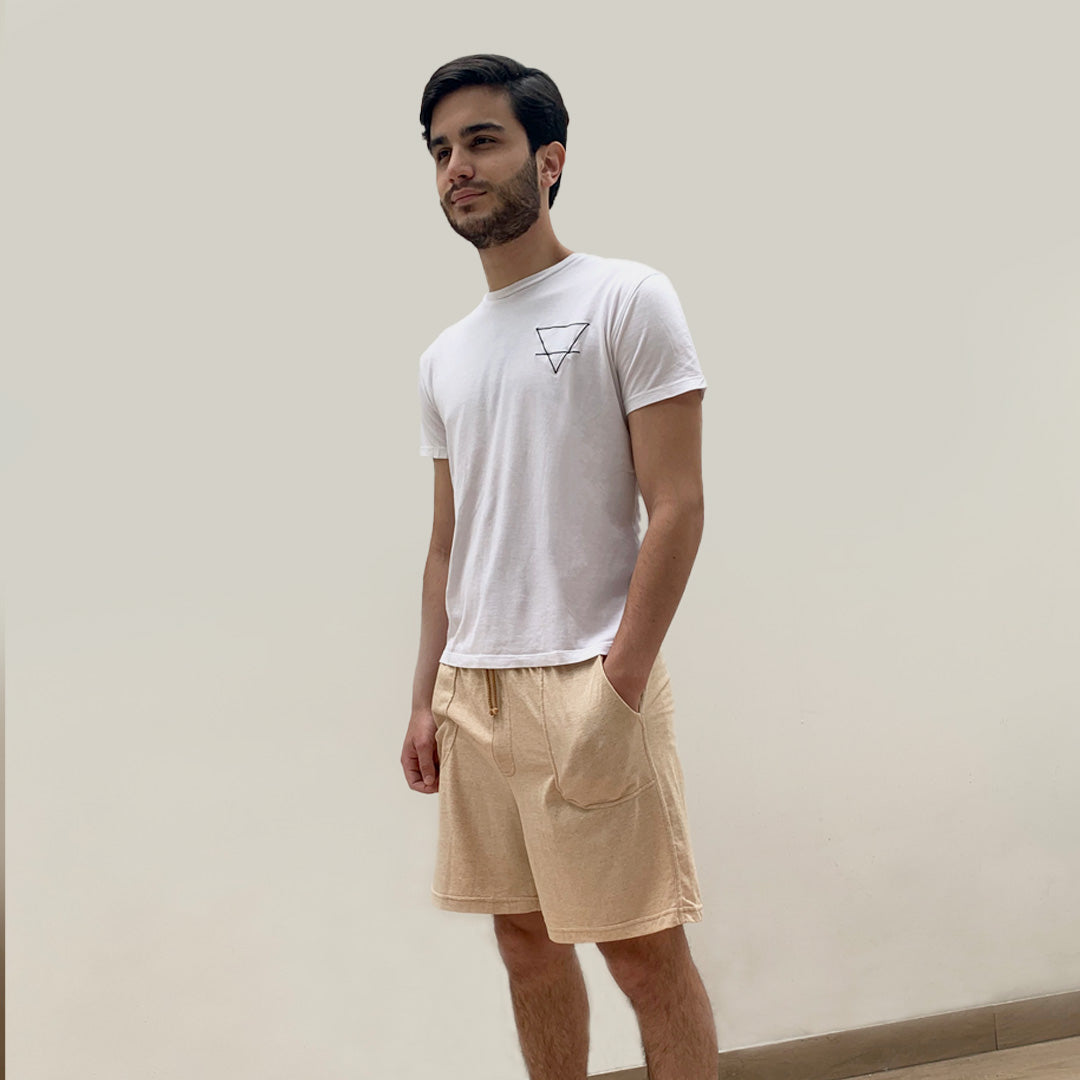 Short para hombre de algodón nativo 100% orgánico sin tinte. El algodón es naturalmente de color beige. Es muy cómodo, fresco e hipoalergénico.
