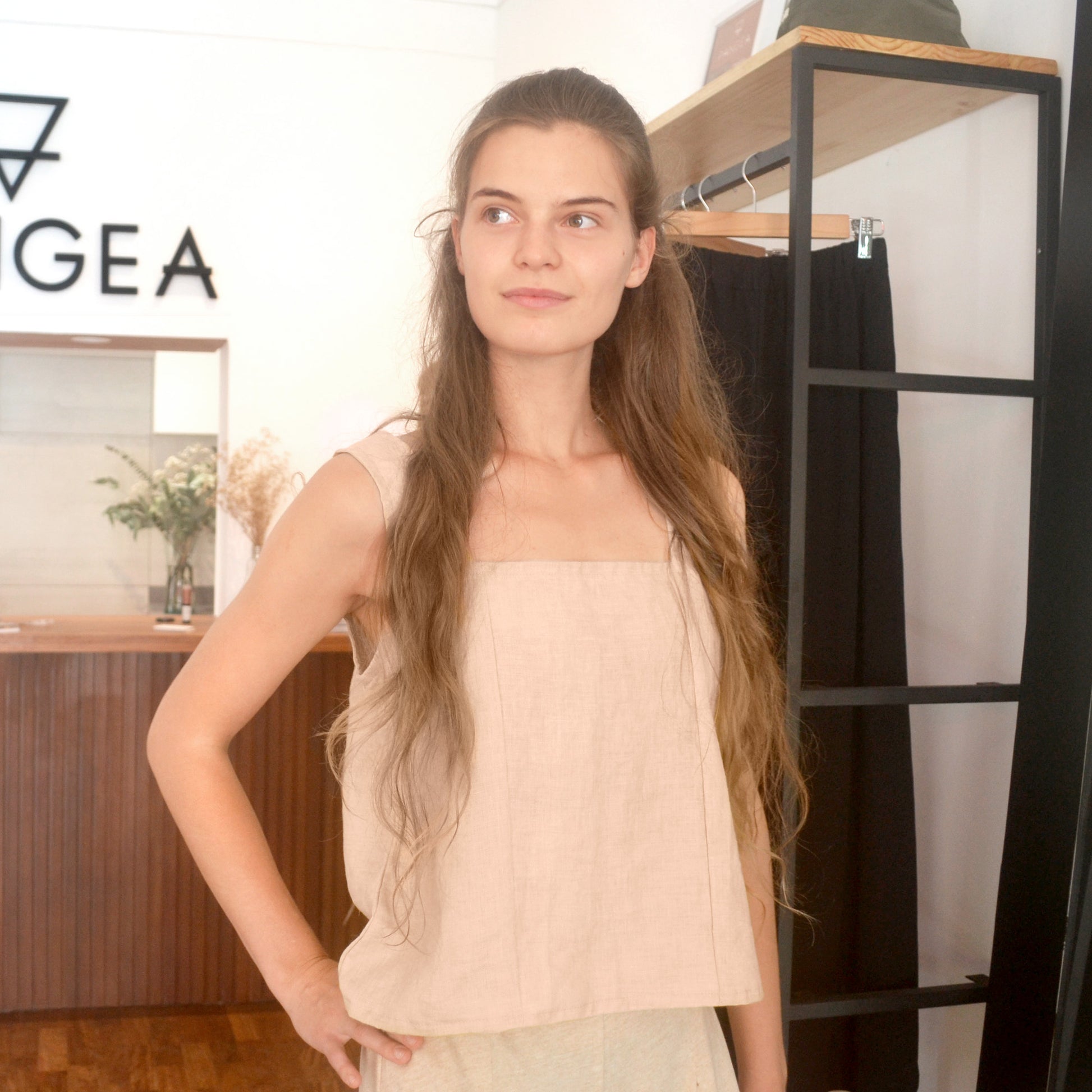 Top de lino teñido con tinte natural color amarillo claro