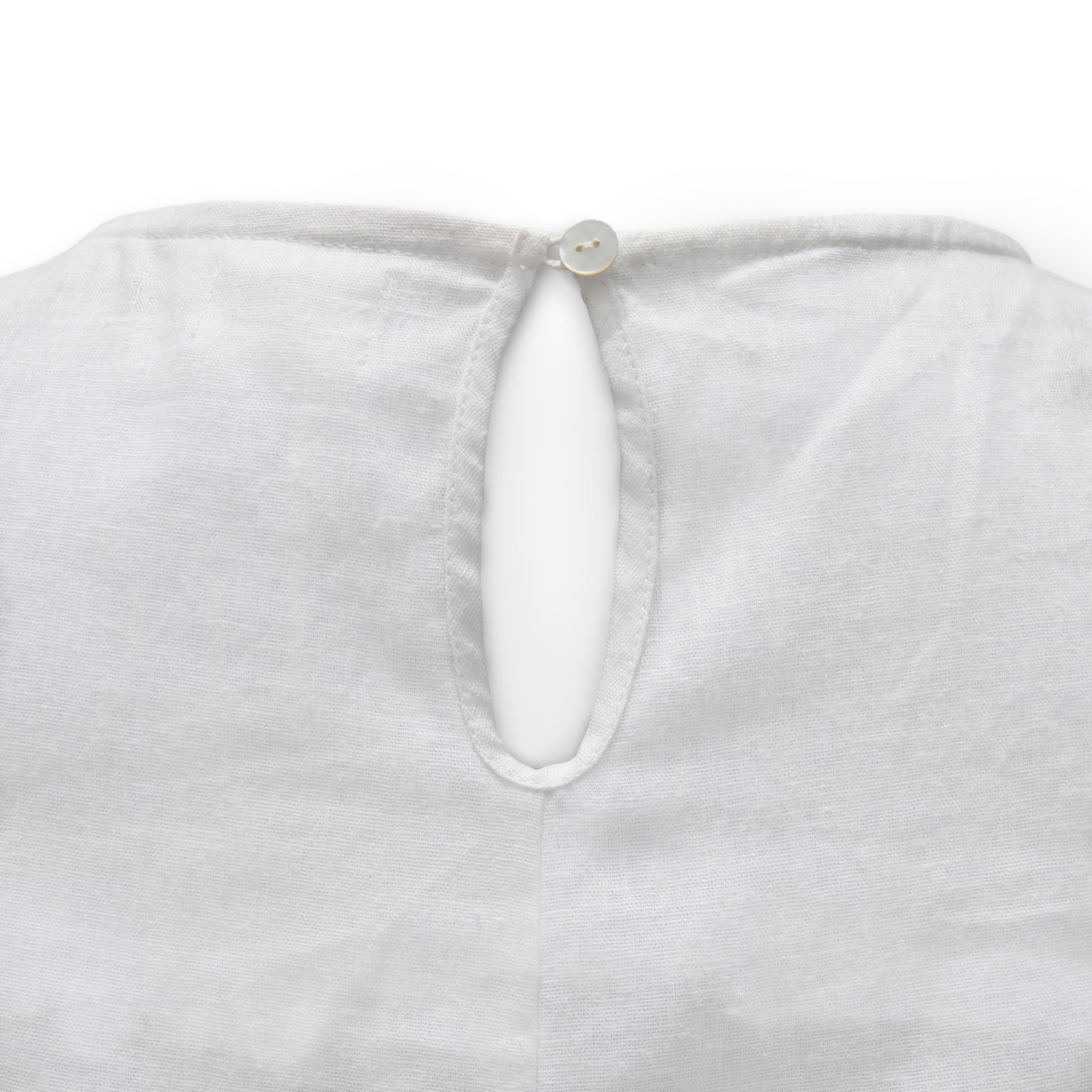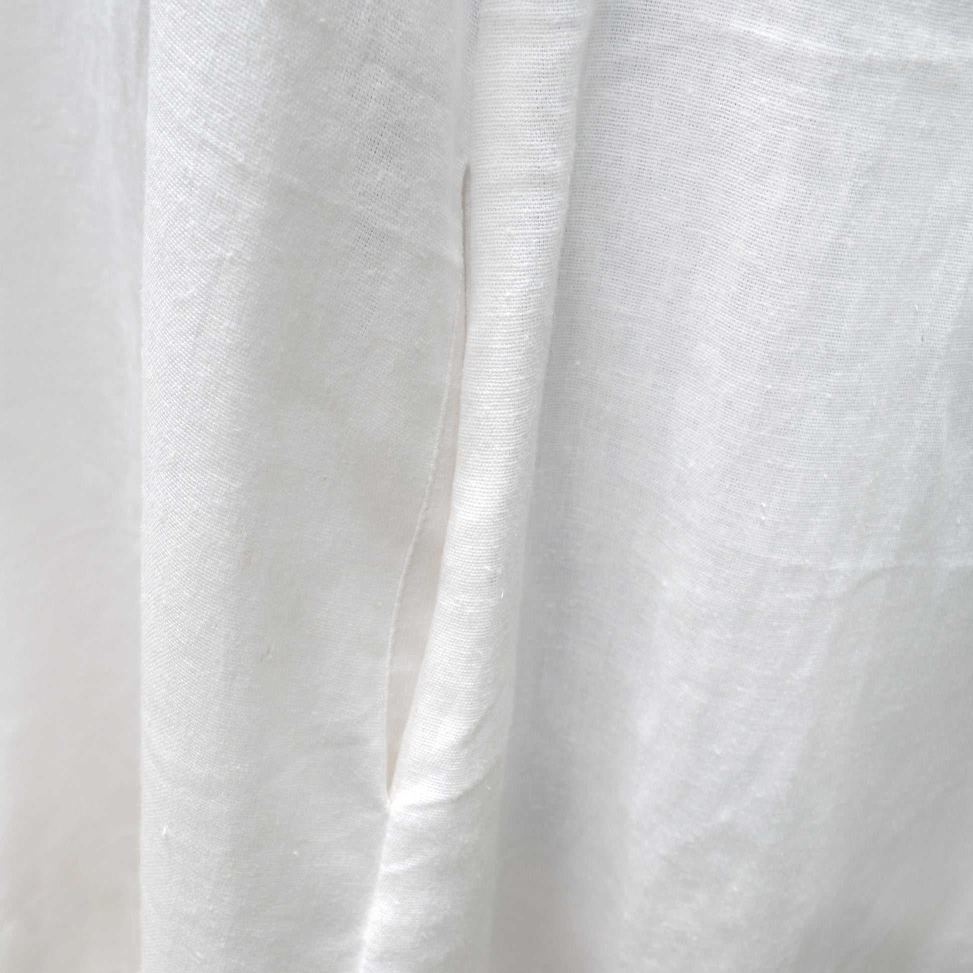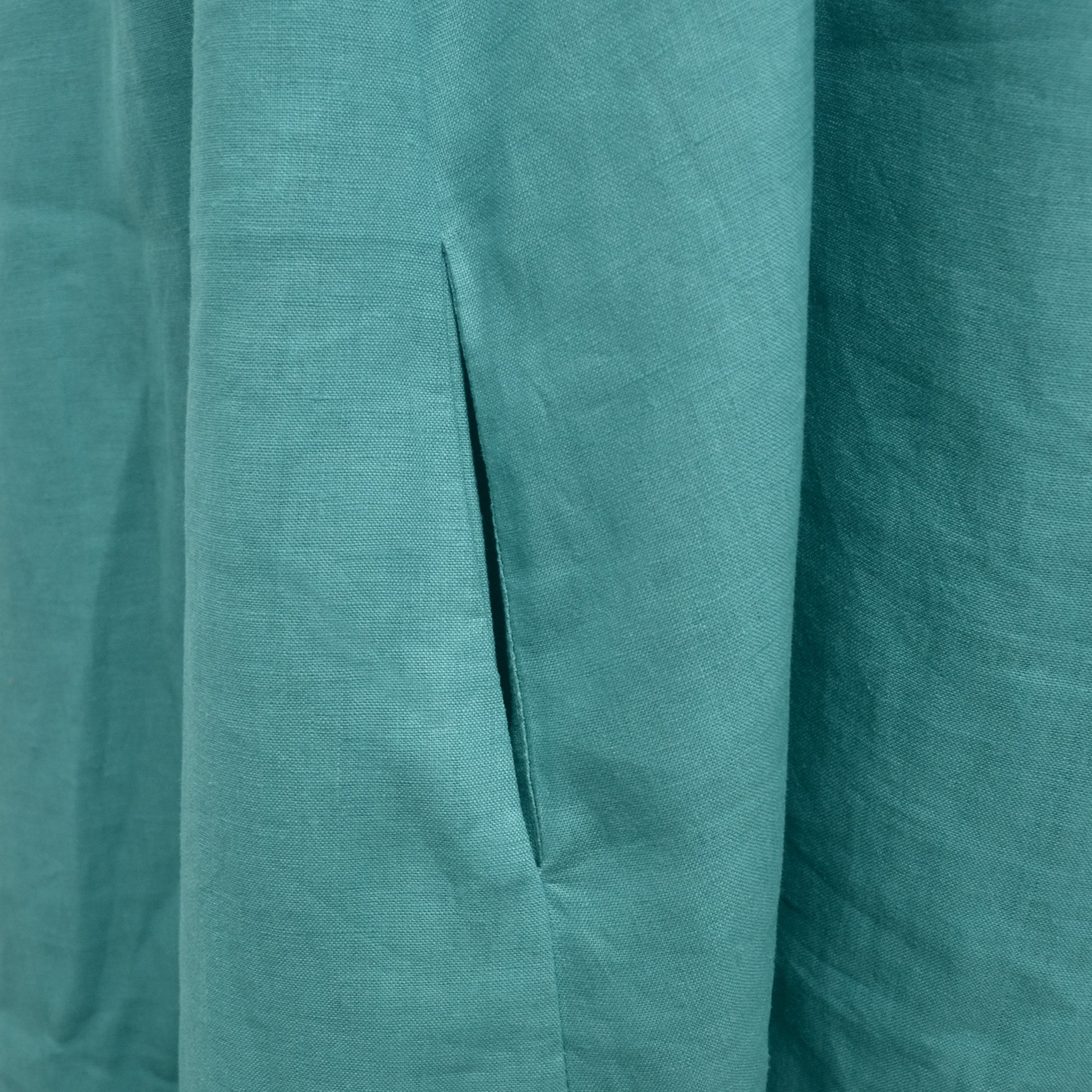 Vestido hecho de 100% lino. Es manga cero, por encima de la rodilla y tiene bolsillos a los lados. Es una prenda clásica y atemporal hecha de fibra 100% natural. Por la parte de atrás cierra con una gota y un botón de nácar.