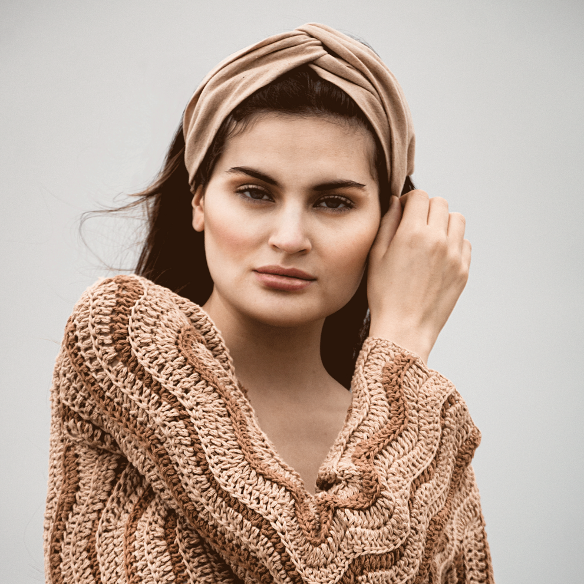 Vinchas hechas con retazos de nuestras telas de algodón orgánico para adultos inspiradas en los turbantes que se usan en el desierto.